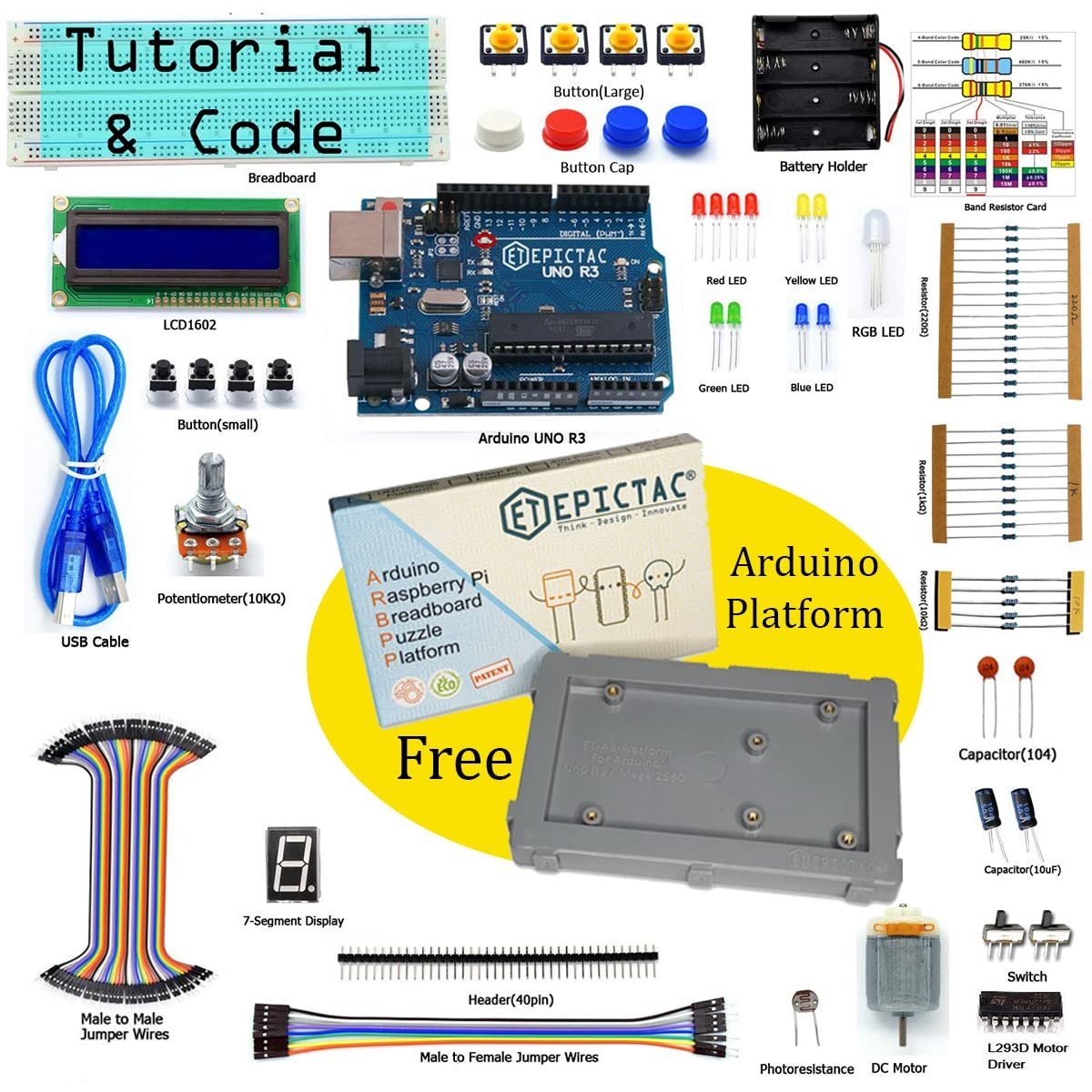 EPICTAC® Beginners Starter Kit with Arduino Uno – 10+ Projects